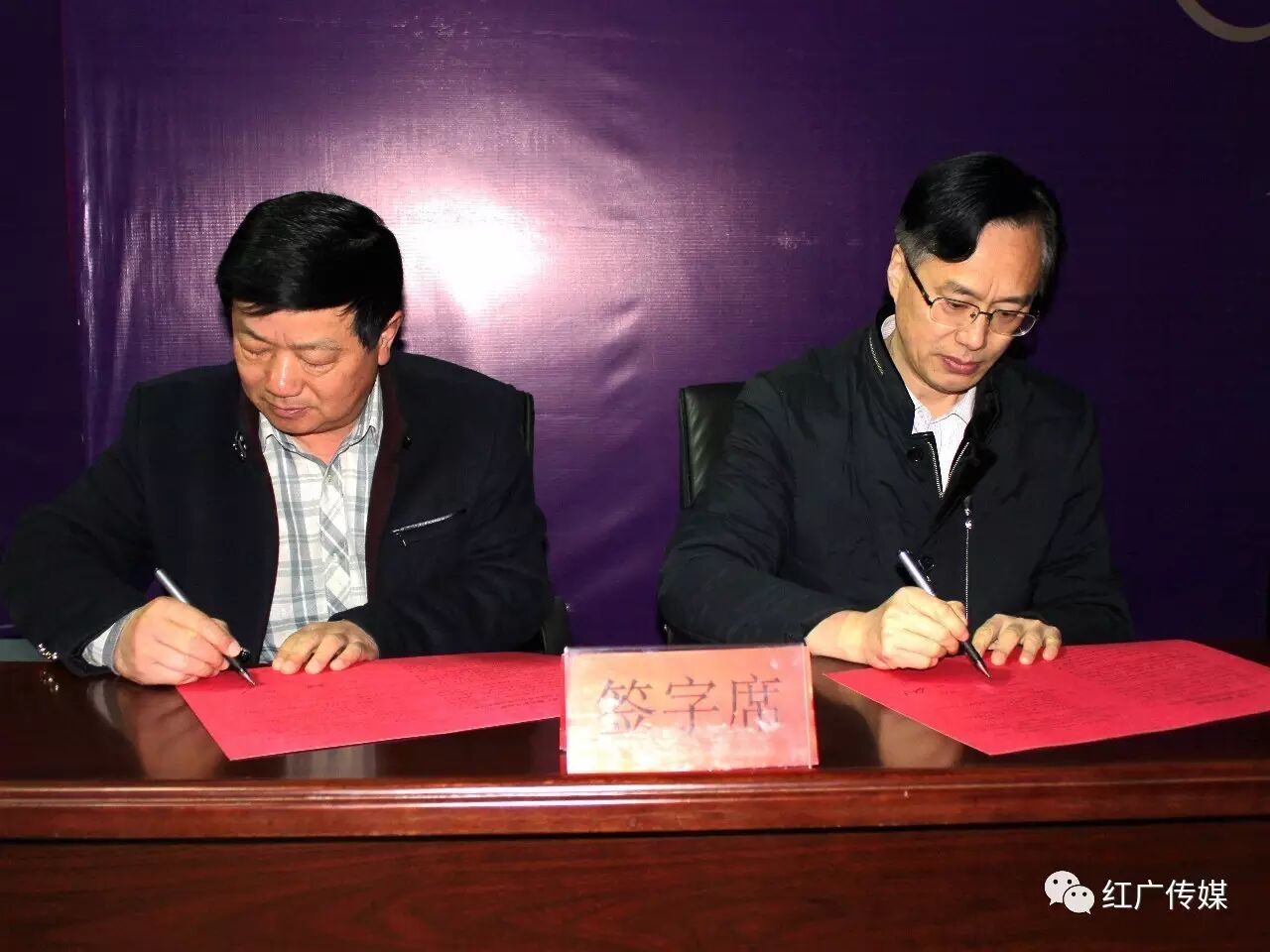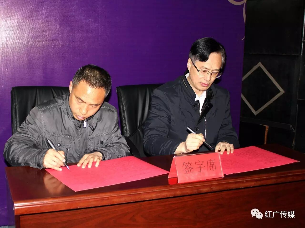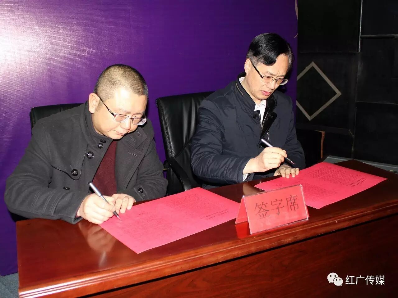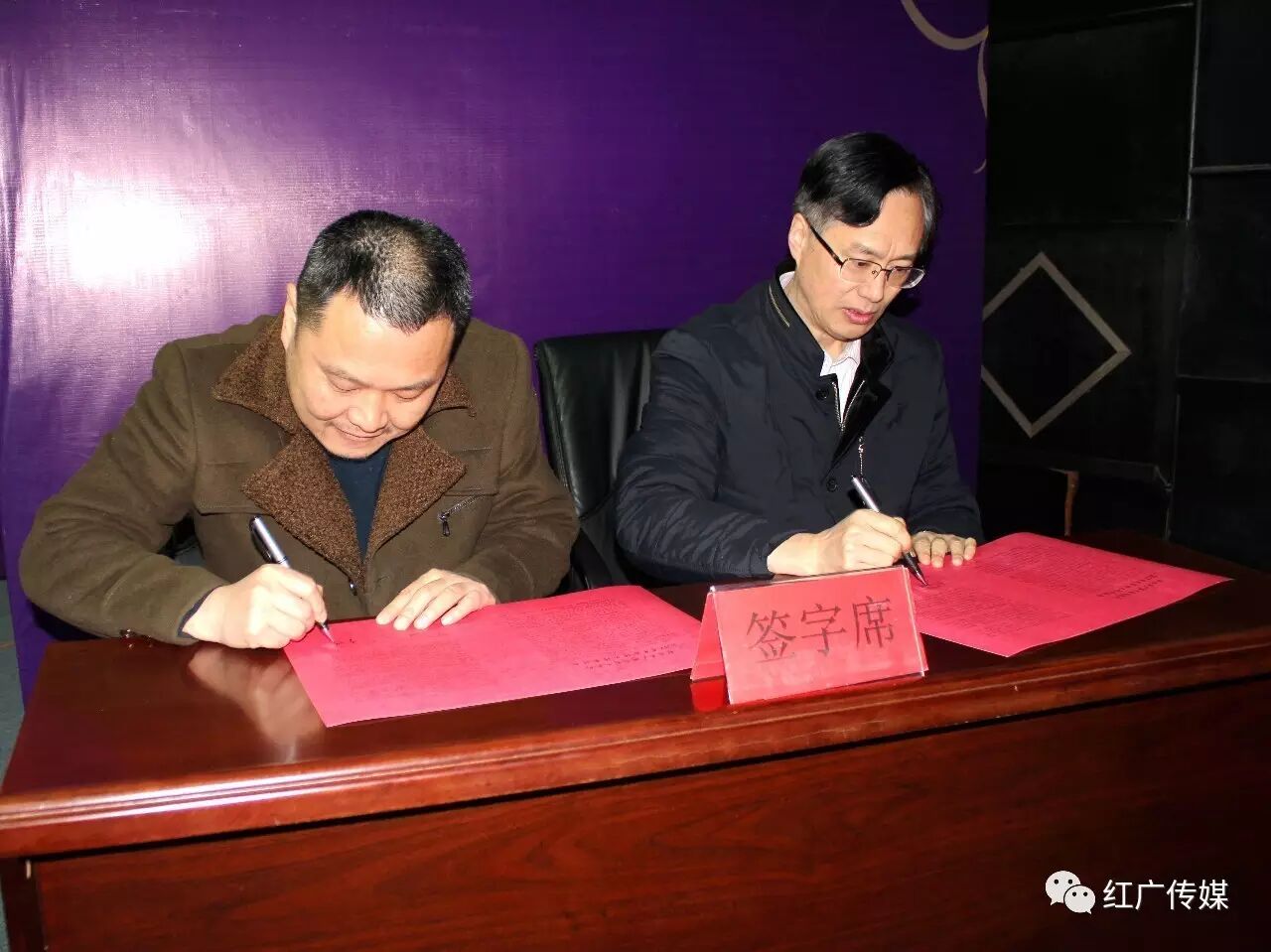 夏训波与电视台负责人吴友华签订宣传工作责任状。