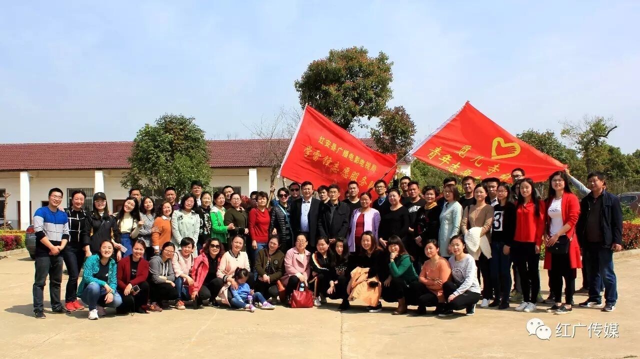 红安县广播电影电视局学雷锋志愿服务队与觅儿寺镇青年志愿者服务队部分队员合影留念。