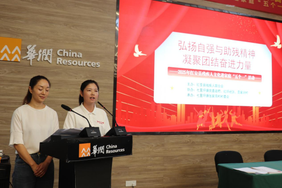 活动在红安华润希望小镇会议室拉开序幕。来自红坪社区的杨玲、张家湾村的戴红领共同朗诵建党百年征文获奖作品《百炼成钢》。这篇聚焦党的百年奋斗历程的作品,以"千锤百炼终成钢"的深刻寓意,传递出"在生活的淬炼中去除怯弱、锻造坚韧"的精神内核。当朗读声回荡在会场,许多残疾人朋友眼含热泪——正如作品所呼唤的,他们也在用日复一日的坚持,在人生的磨砺中把自己打磨成"优质的人生之钢",活出生命的硬度与宽度。
