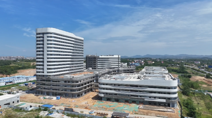 红安网消息 红安县人民医院新院区项目是我县适应医疗水平高质量发展需求的重大民生项目,目前,项目一期已竣工,项目二期进展如何呢?近日,红安融媒(传媒集团)记者来到项目建设现场。在县城东部发展大道杏花乡陡步河村路段,一栋栋富有现代气息的大楼拔地而起,从空中俯瞰,宛如一颗璀璨明珠,闪耀在城东新区。