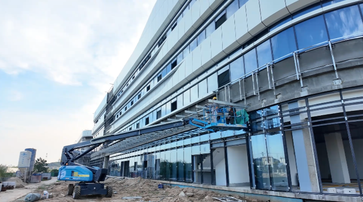 黄总工介绍,项目二期总建筑面积为16.86万平米,目前主体结构、砌体工程、墙面粉刷工程、屋面防水工程已全部完工,进入室内全面装修阶段,医院各医疗科室负责人已提前介入,进行后期设备安装使用的细化对接。