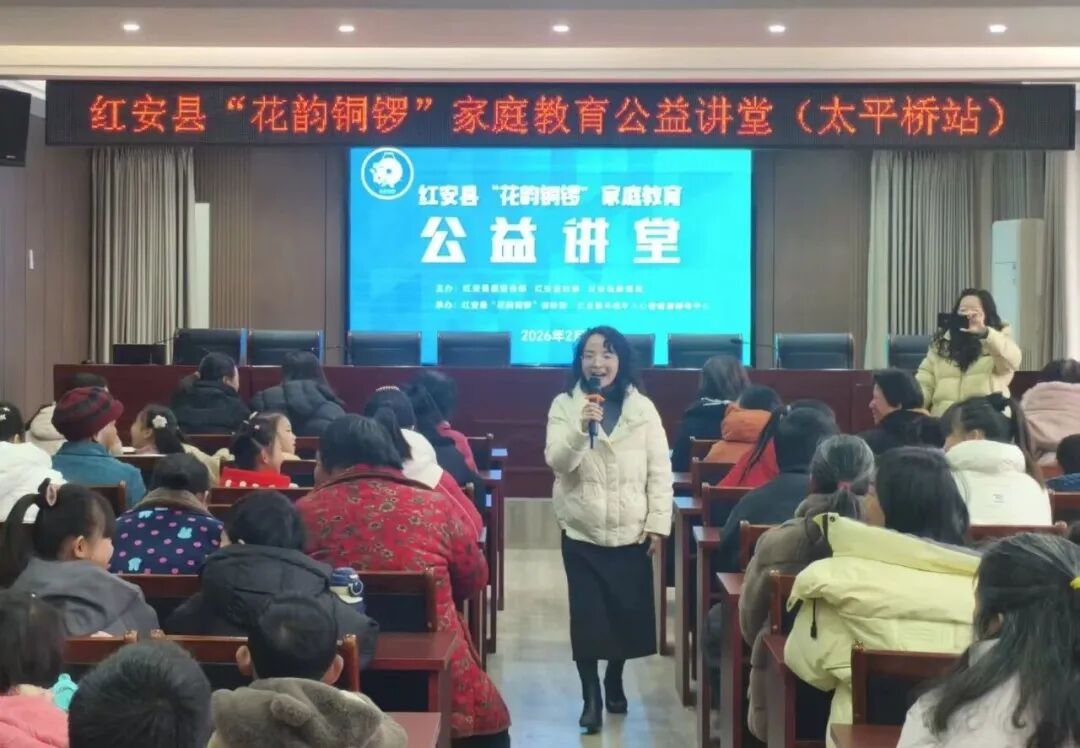 红安网消息 2月3日上午,红安县“花韵铜锣”家庭教育项目主办的公益讲座专场在太平桥镇举办。活动特邀黄冈市及红安县“花韵铜锣”家庭教育讲师赵莉,以《爱的对话 构建亲子有效沟通》为题,为百余名家长开展专题辅导。