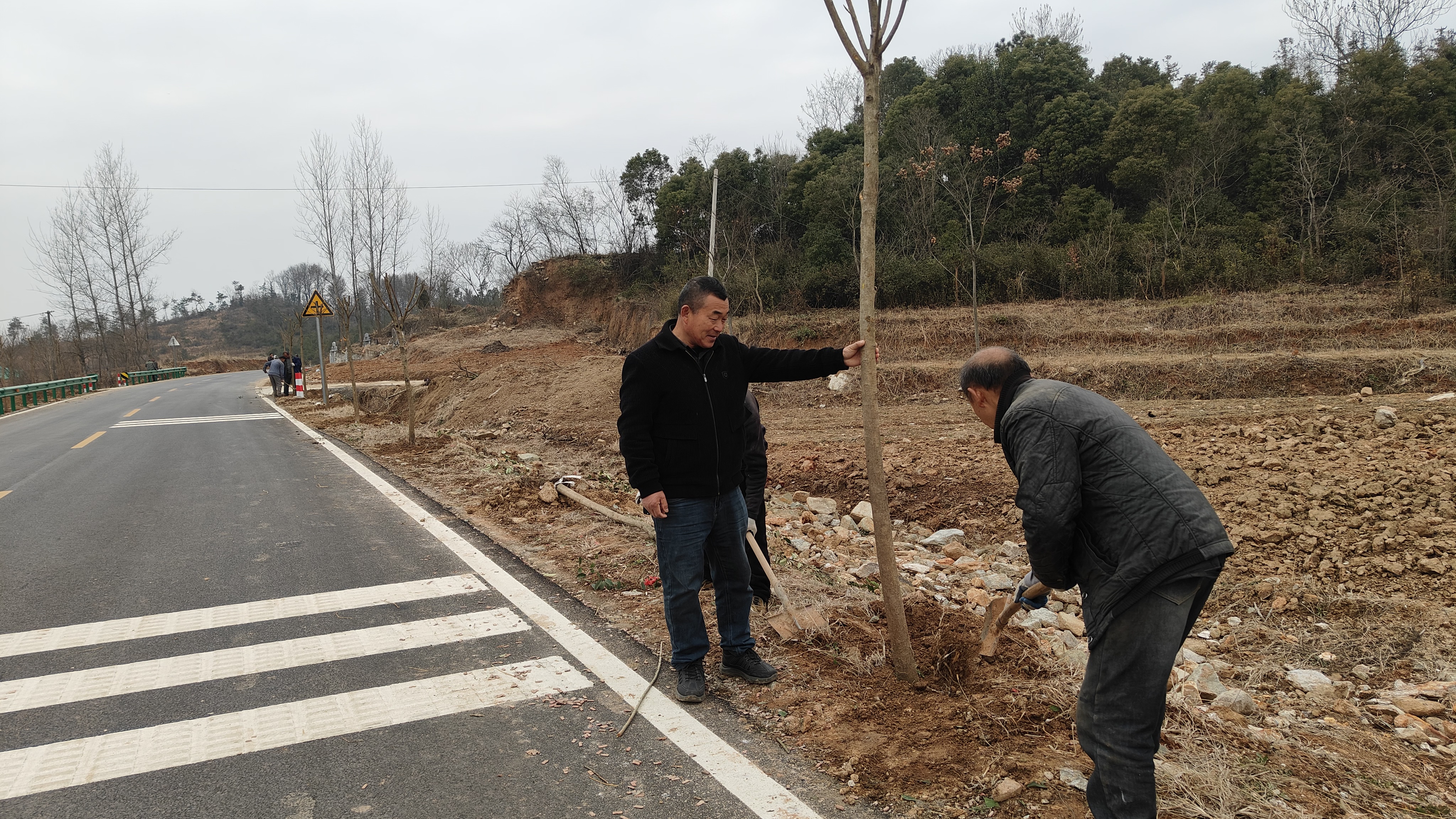 红安网消息 2月3日,在湖北省红安县上新集镇王姚线延伸段的新修公路旁,工人们正抢抓有利时节,放线、修剪、挖穴、栽植,一派热火朝天的绿化施工景象。