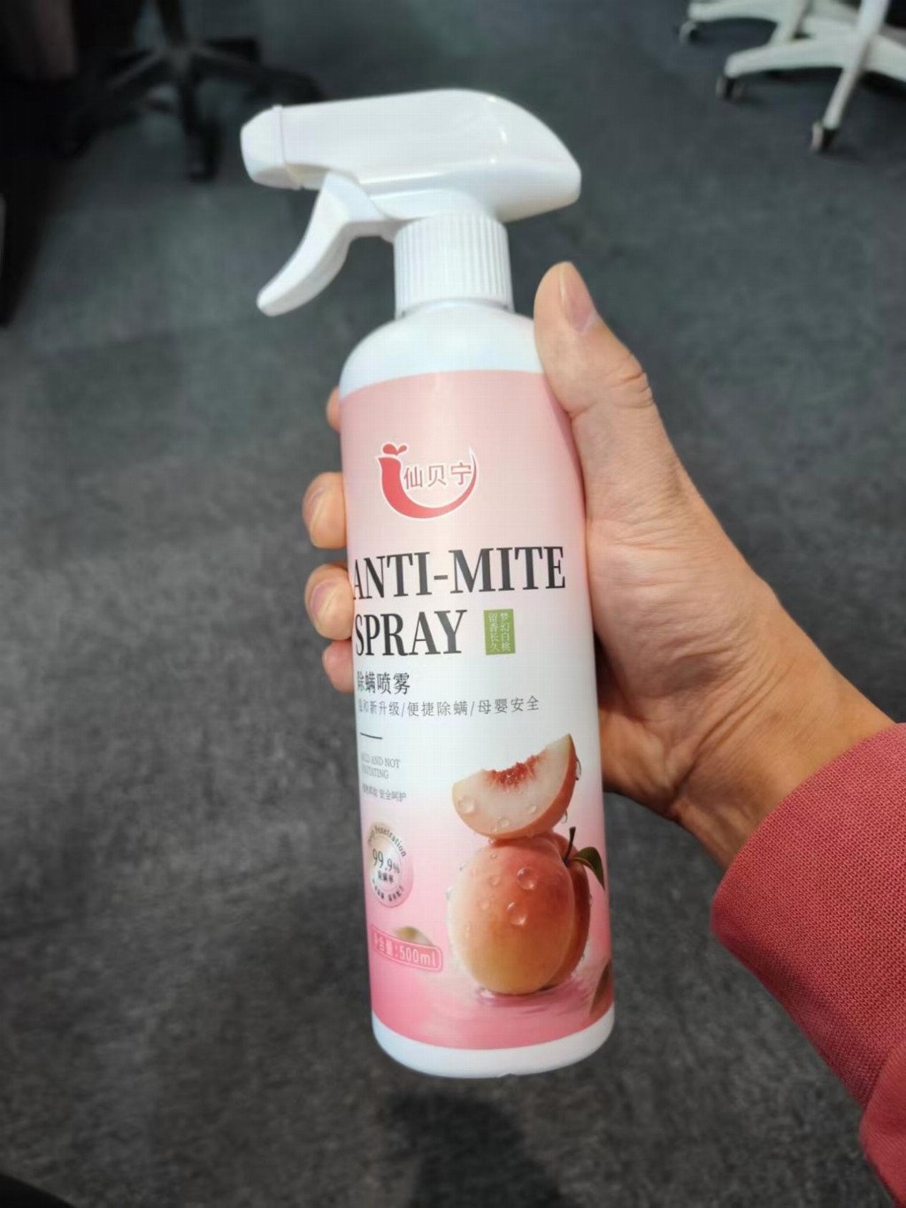 仙贝宁针对车载场景专项优化,喷洒后可快速渗透车载座椅皮革、脚垫纤维、空调出风口,1.5分钟速干无水印,不会损伤车载内饰,也不会留下黏腻痕迹,15分钟内白桃香氛即可均匀扩散,彻底掩盖并去除车载异味、螨虫异味,无需长时间开窗通风,喷洒后可直接上车使用,兼顾除螨、除菌、除味三重功效。无论是日常通勤、长途自驾,还是冬季密闭车载环境,只需轻轻一喷,就能快速杀灭车载螨虫及细菌,长效防护可达30天,减少频繁喷洒麻烦;同时适配床品、枕头、床垫、地毯、沙发、衣柜、毛绒玩具、空调口、宠物窝、吸烟室、垃圾桶等所有场景,使用方法简单便捷,直接喷洒即可,一瓶搞定车载+居家全场景除螨需求。
