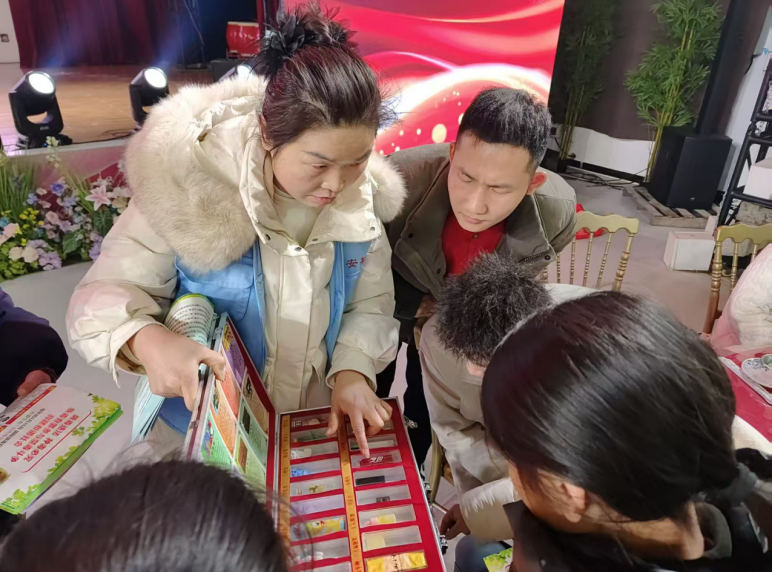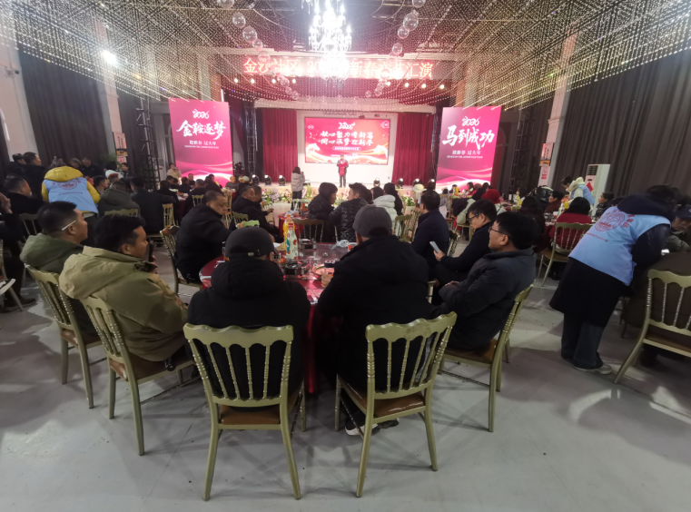 红安网消息 2月7日上午,红安县城关镇金沙社区“2026凝心聚力谱新篇 同心筑梦迎新春”年会活动在金沙大礼堂举办,社区禁毒社工闻讯而来,借机开展禁毒宣传活动。