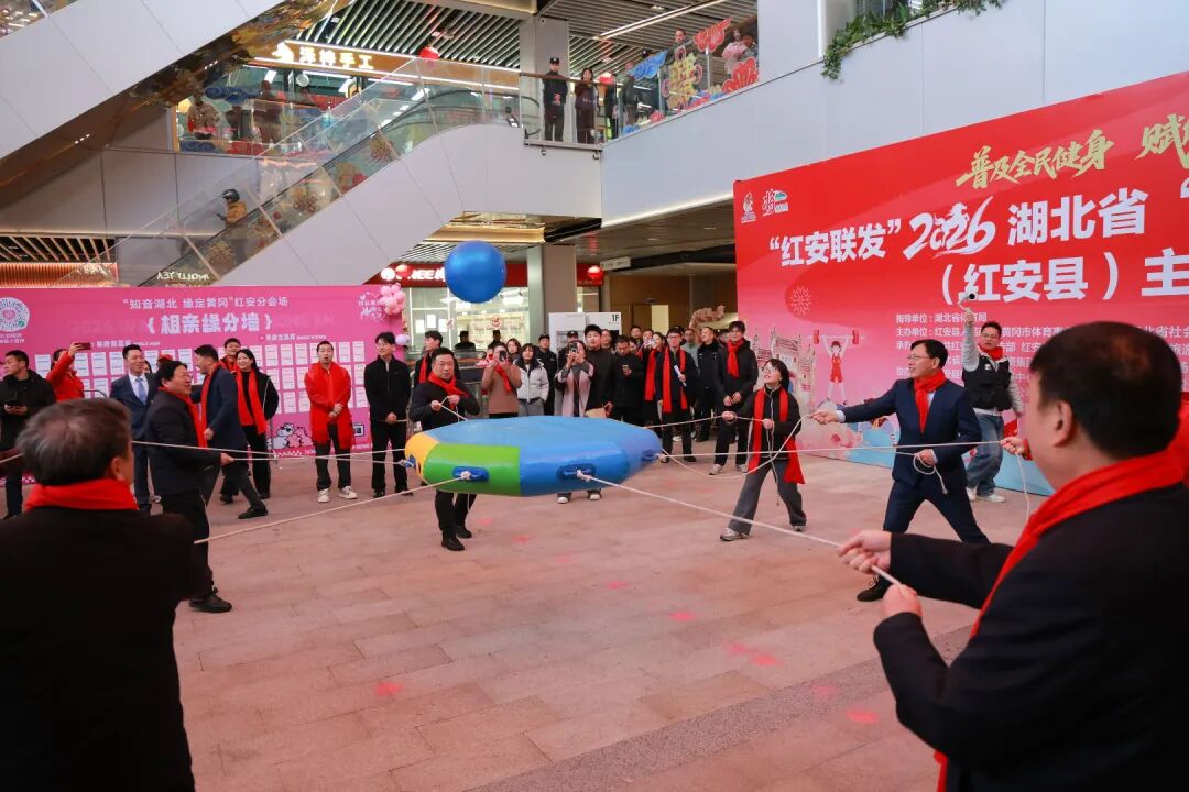 红安网消息 2月21日,“红安联发”2026 湖北省“体育过大年”红安分会场主题活动在超级万星里•万达广场举行,活动主题为“普及全民健身 赋能美好生活”。湖北省社会体育管理中心业务部部长邱亚娟,中国举重奥运冠军汪周雨出席,湖北省体育彩票管理中心黄冈分中心主任童沁晖宣布活动启动,红安县委书记胡广致辞,县委副书记、县长钟林主持,县人大常委会主任张治祥,县政协主席张凤珍,以及熊孟元、刘晓军、梅新文、冯兴潮等县领导,赞助企业红安县联发建筑安装工程有限责任公司董事长陈继承,各分会场负责人、运动员、裁判员及社会体育指导员代表、志愿者等参加活动。