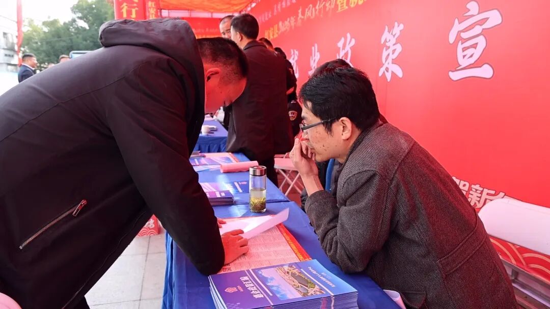 在人社政策宣传专区,前来咨询的群众络绎不绝。县人社局工作人员耐心细致地为每一位群众解答就业创业补贴、社会保险、劳动维权等方面的疑问,将政策服务送到群众心坎上。