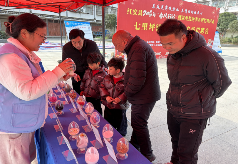 红安网消息 3月5日,红安县“春风行动”七里坪镇专场招聘会在红军广场中心热闹启幕。“春风促就业,真情相助暖民心”的红色标语下,求职群众围在展板前咨询,而穿梭在人群中的“蓝色平安卫士”,让这场就业帮扶多了一份安心守护。