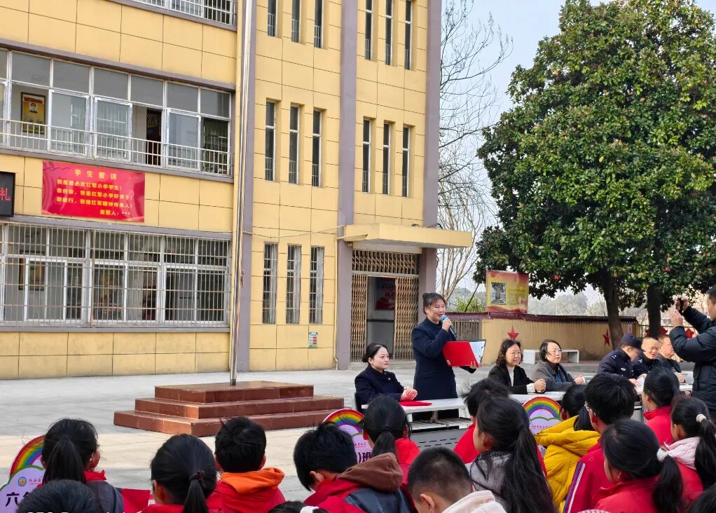 本次活动由黄麻纪念园董必武纪念馆副馆长孙玲,馆员李荣带领讲解员余丹、彭迪一行,满怀热忱地走进上新集董必武红军小学,参加学校开学启动仪式。此次馆校联动,是双方在红色教育领域的深度合作,旨在充分发挥纪念馆的红色资源优势,将红色文化融入校园教育,让青少年在成长的关键时期接受红色精神的熏陶。