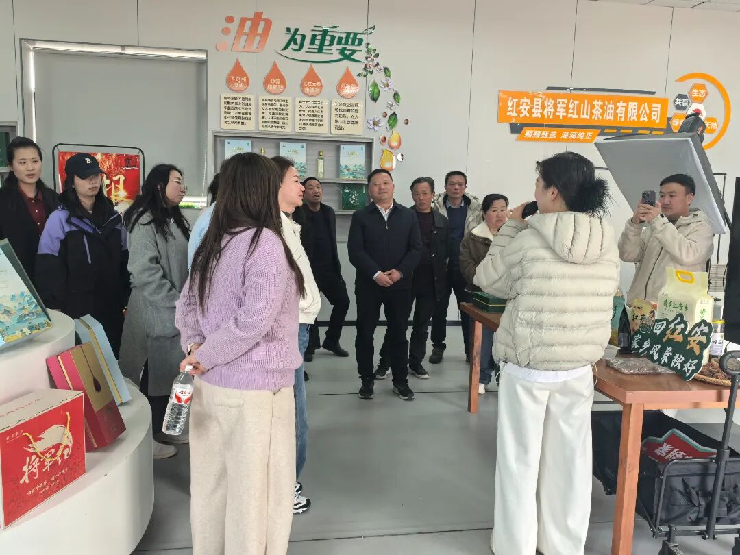 在火连畈茶场,大家实地考察参观了红安县将军红山茶油有限公司,聆听公司副经理、红安县招商大使、文化旅游推广大使、乡村振兴头雁讲堂讲师、“将乡小龙女”IP打理人王斌创业故事,感受红色热土上女同胞的产业发展与奋进活力。