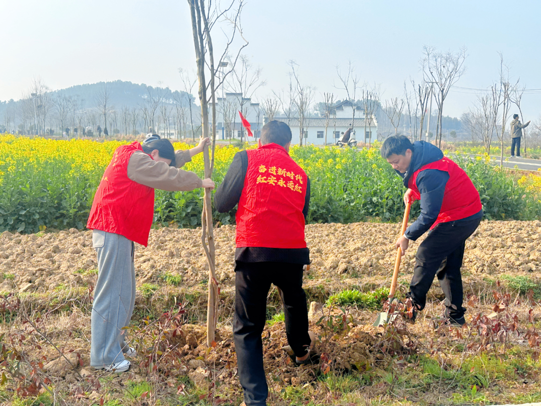 红安网消息 春风拂绿,植树添绿正当时。3月12日,在第48个植树节到来之际,红安县杏花乡组织机关干部职工前往勇毅村开展义务植树活动,以实际行动为美丽杏花增绿添彩。