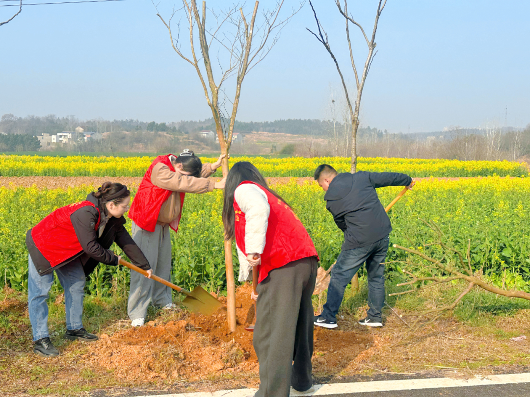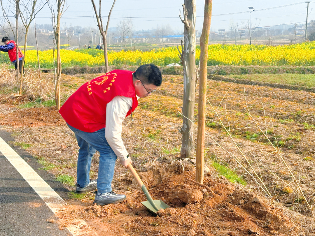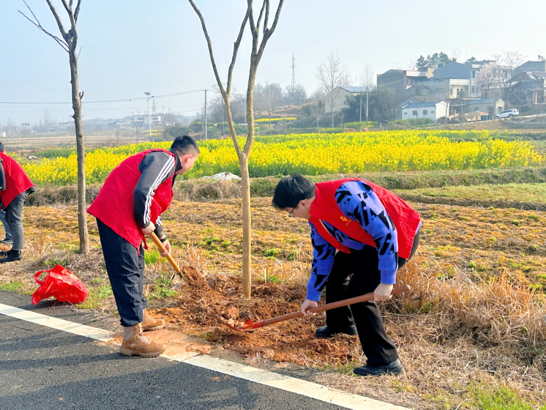 经过一上午的辛勤栽种,原本空旷的道路两旁,如今挺立起两百余株新绿的紫薇。它们在春风中摇曳生姿,为勇毅村平添一抹鲜亮的春色,也播撒下满含生机的绿色希望。