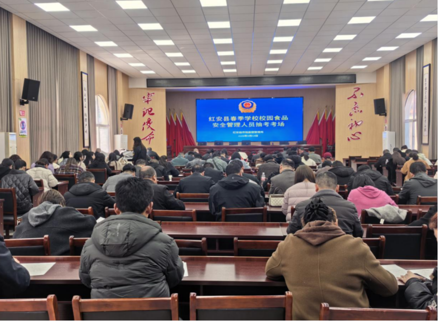 红安网消息 为进一步提升我县校园食品安全管理水平,强化相关人员责任意识和专业素养,3月12日下午,红安县市场监督管理局精心组织开展了全县校园食品安全管理人员食品安全知识培训考试。此次考试共设10个考点,全县各校(幼儿园)的食品安全副校长、食品安全总监、食品安全员共计324人参加了此次考试。