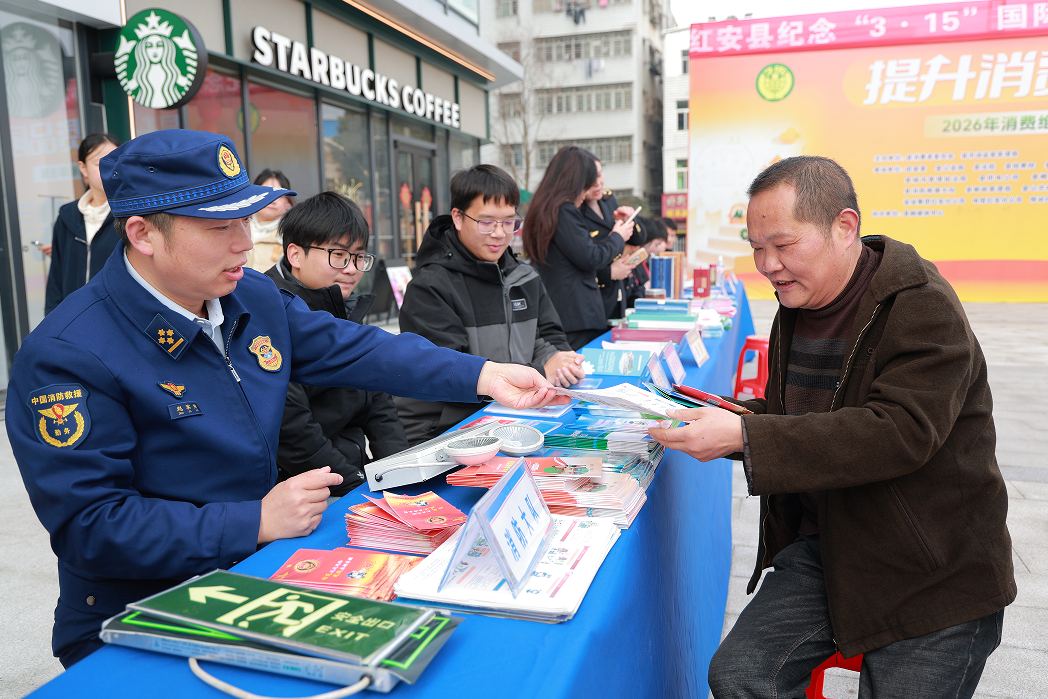 红安网消息 3月13日上午,红安县2026年“3·15”国际消费者权益日纪念活动在万达广场举行。县领导李国彬、熊盛、刘美华参加活动。