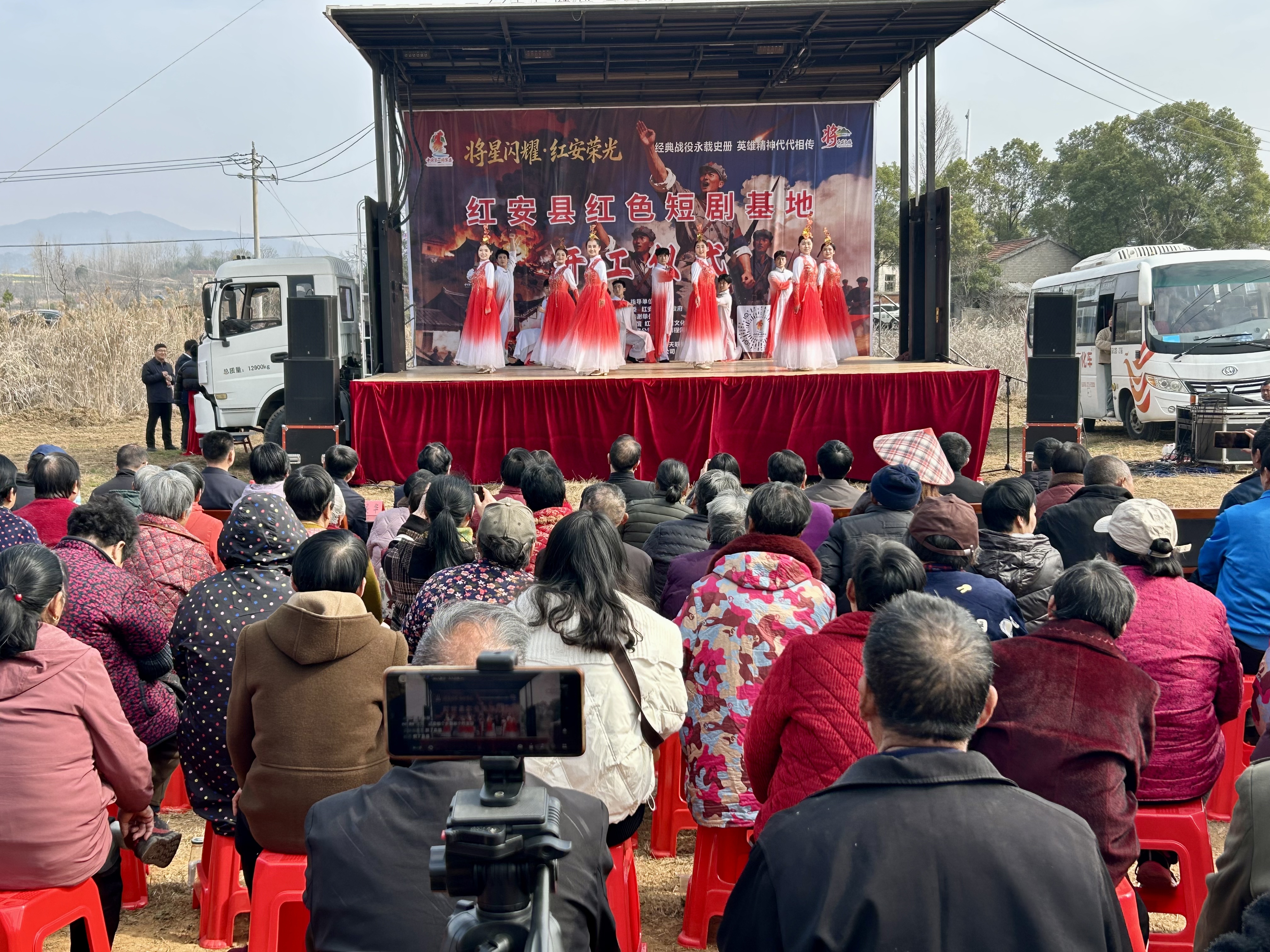红安网消息 春回大地,万象更新。3月13日上午,红安县华家河镇矿山村彩旗招展、气氛热烈,《红安将星志》系列短剧项目开工活动在此隆重举行。县委常委、宣传部部长熊孟元,县政协副主席刘美华出席活动;县直相关部门分管负责人,华家河镇全体脱产干部、镇直部门负责人及各行政村书记,项目投资企业代表等齐聚一堂,共同见证这一红色文化盛事的启幕。