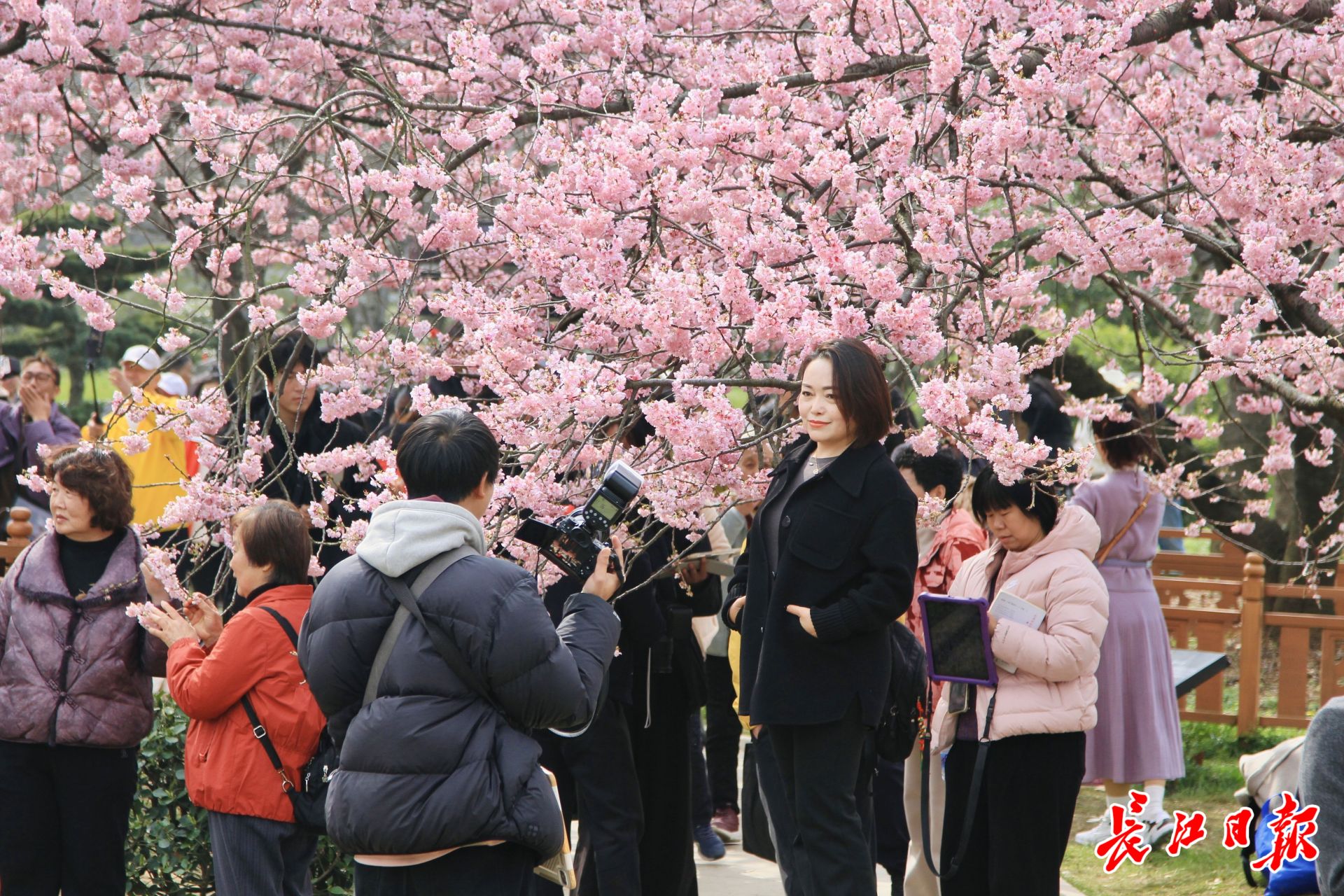 武汉关广场2025年樱花盛开引来游人如织。 (资料图片)