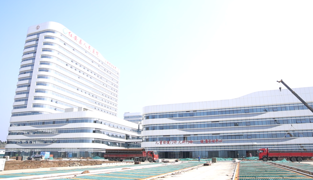 走进红安县人民医院新院区建设现场,主体建筑及内部装修已基本完工,各类配套设施安装有序推进。