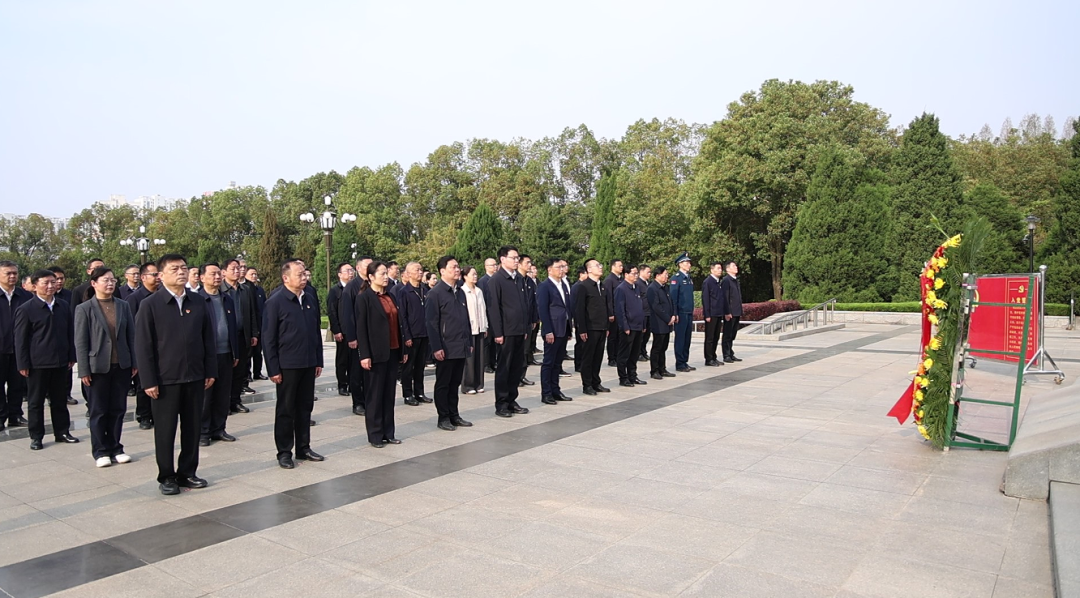 在黄麻纪念园纪念碑广场,胡广缓步上前,向革命烈士纪念碑敬献花篮,面向党旗重温入党誓词。在英烈墙前,大家依次敬献鲜花,驻足瞻仰,深切缅怀革命先烈的丰功伟绩,汲取奋进力量。