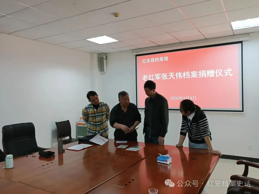红安网消息 清明寄哀思,薪火永相传。4月4日,老红军张天伟亲属一行来到红安县档案馆参观张天伟档案室,并捐赠8件珍贵红色档案。