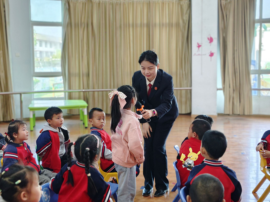 结合幼儿认知特点,姚律师以趣味短视频为载体,依次播放校园防欺凌、防溺水等安全科普影片,用直观鲜活的画面,通俗易懂地普及安全防护知识。现场还设置趣味互动小游戏,孩子们踊跃参与、积极思考、快速应答,在轻松愉悦的氛围中明辨行为对错,筑牢安全防线。本次活动有效增强了幼儿自我保护意识与法治观念,为幼儿健康快乐成长保驾护航。